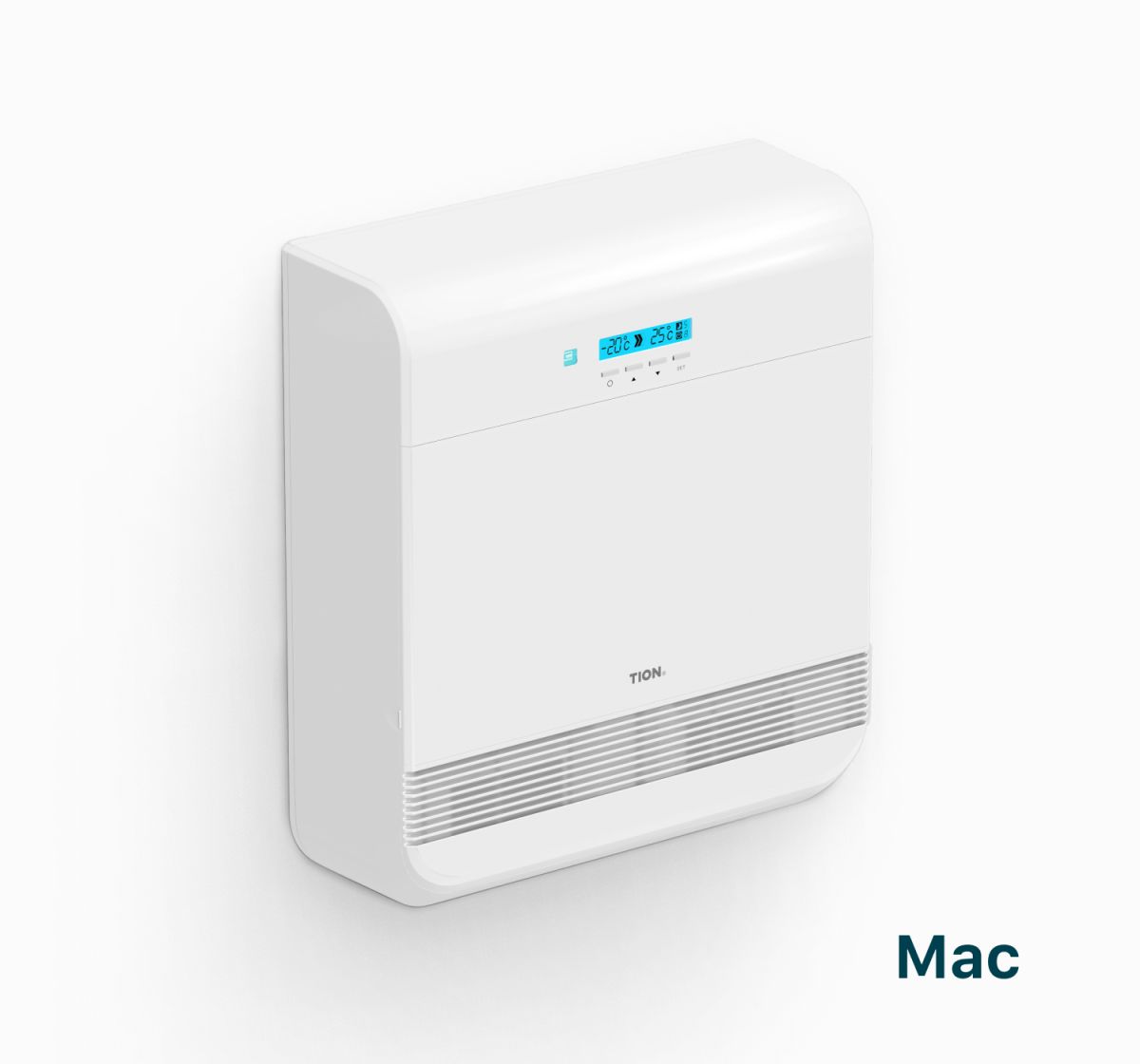 Бризер Tion O2 МАС – решает проблемы духоты, сырости, влажности и плесени за счет механической подачи свежего, очищенного и подогретого до комнатной температуры воздуха.