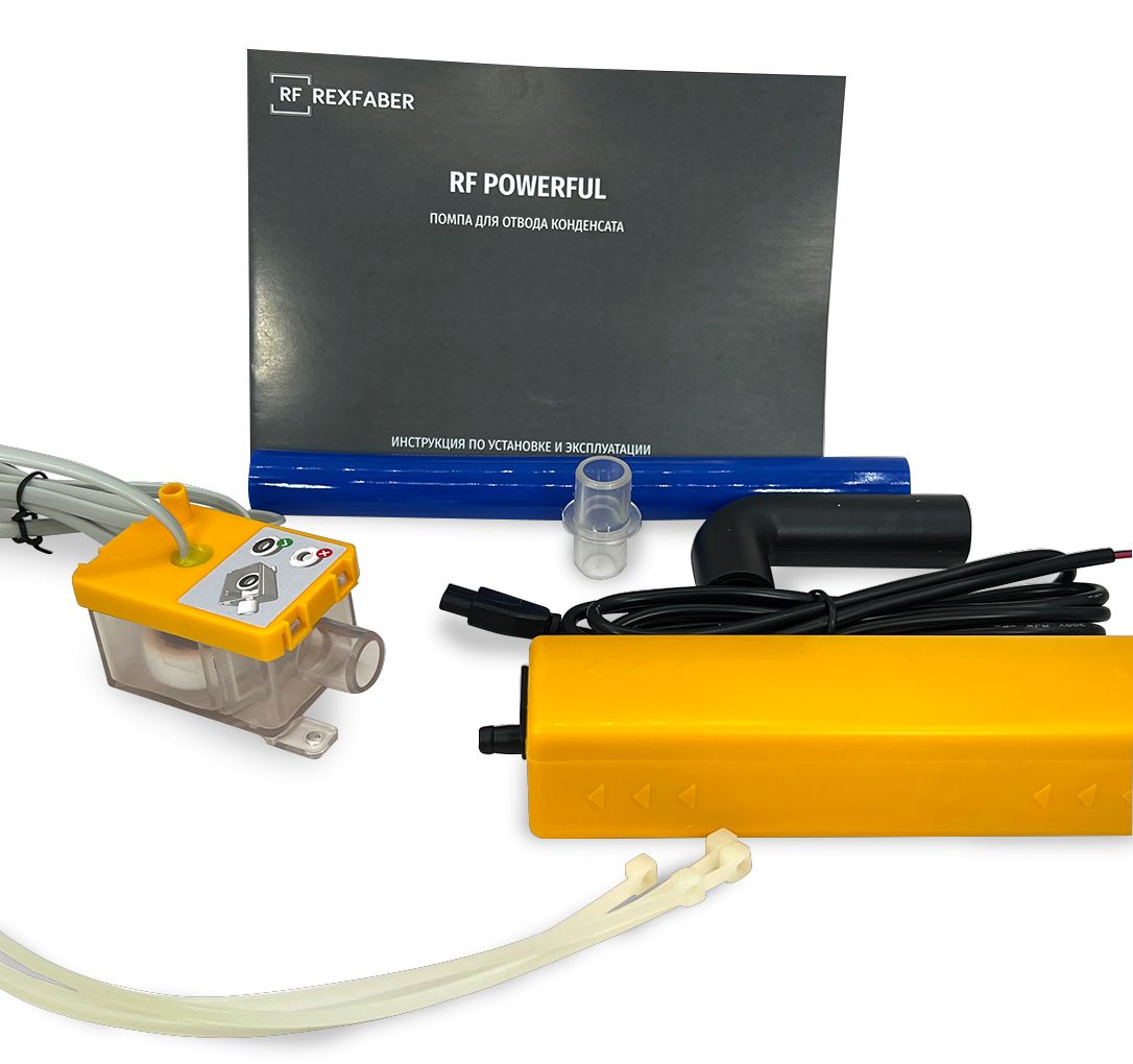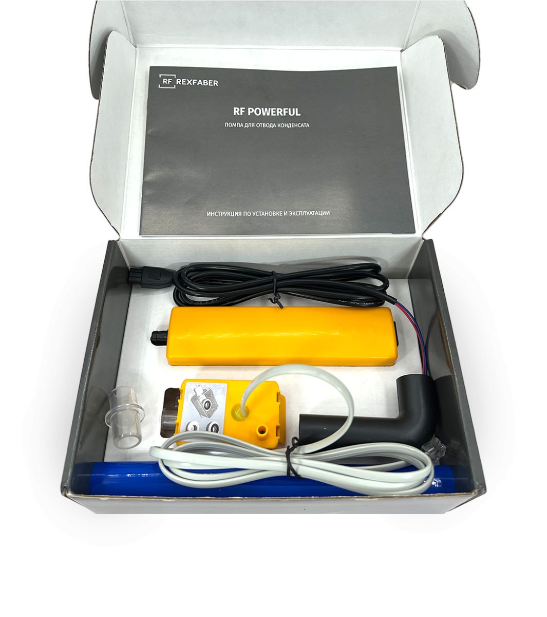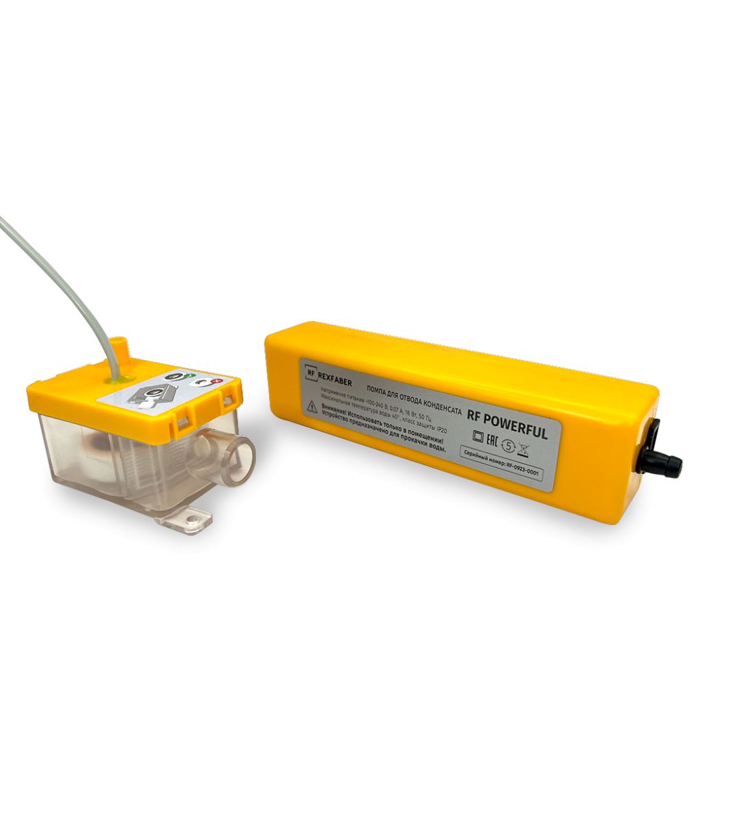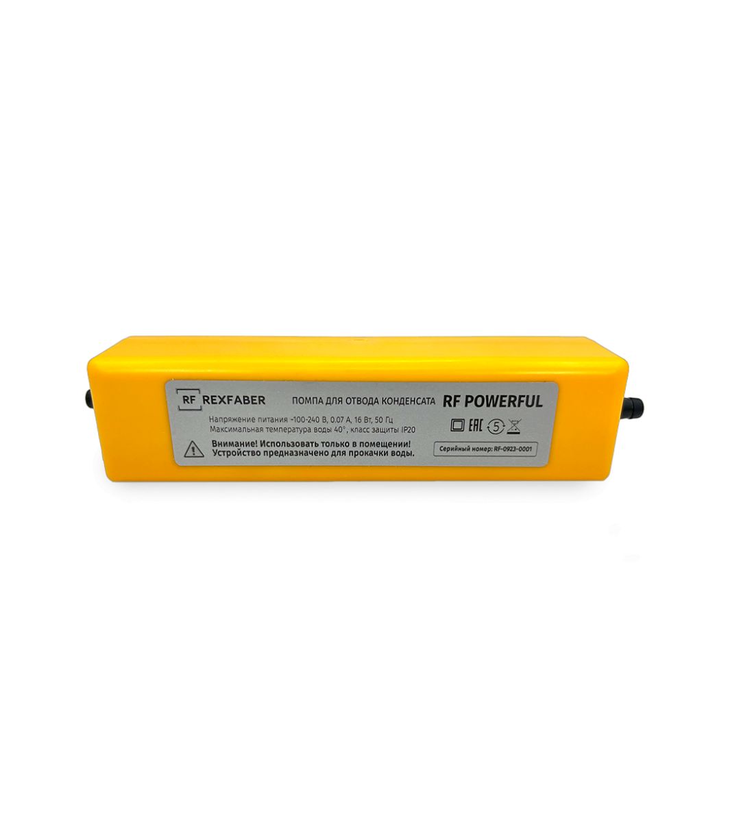 Помпа для отвода конденсата в канализацию в системах кондиционирования. Отличительная особенность дренажного насоса RF-POWERFUL – это мембранный насос, который обеспечивает бесшумную работу помпы, высокую производительность, полное отсутствие вибрации. Установленный в помпе мембранный насос мы максимально адаптировали к условиям конденсата кондиционера(повышенное содержание солей, смол, жир и т.д.), циклу работы, количеству запусков. Это гарантирует долгую и бесперебойную работу дренажного насоса. Корпус RF-POWERFUL мы спроектировали в минимальных размерах, учитывая все особенности мембранного насоса (не ухудшая характеристики и срок службы), что позволяет монтировать помпу RF-POWERFUL в ограниченном пространстве (габаритные размеры 148мм*38мм*35мм). Дренажный насос комплектуем качественными и надежными электронными компонентами от производителей с мировым уровнем, что гарантирует высокую степень надежности работы устройства. Помпа оснащена электронным микропроцессором, который обеспечивает бесперебойную работу насоса в заданных параметрах. В корпусе бака используем датчики Холла, которые с очень высокой степенью надежности регулируют работу помпы, передавая положение поплавка на микропроцессор. Каждое устройство перед выходом из производственного цеха проходит контроль качества по нескольким параметра, что обеспечивает гарантию работы и повторяемость каждого устройства.