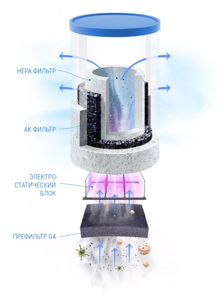 Очистка воздуха от пыли, аллергенов, газов и запахов (G4 + комбинированный НЕРА + АК)
