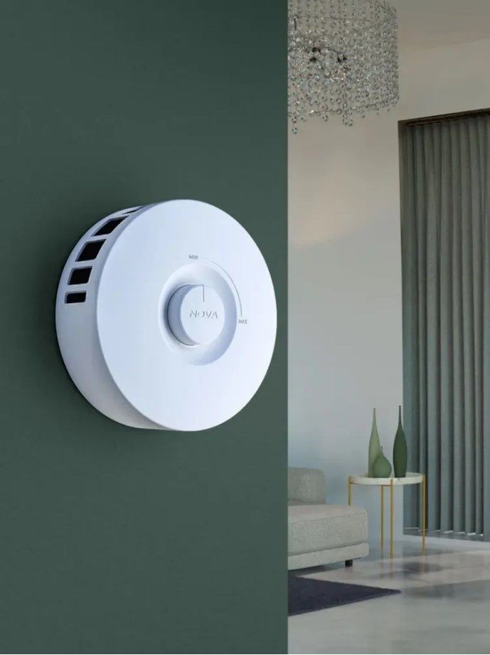 Оголовок приточного стенового клапана КИВ NovaOPTIMA предназначен для осуществления притока свежего воздуха с улицы в помещения различного назначения (до 57м3/час). Объём воздуха, поступающего в помещение, регулируется при помощи регулировочного колеса по середине оголовка.