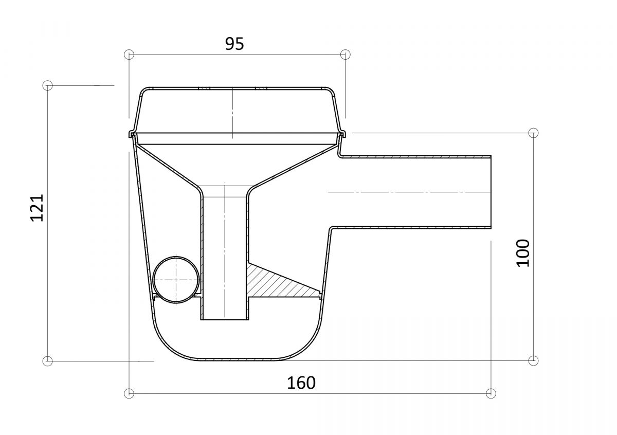 Сифон представляет из себя капельную воронку для сбора конденсата в кондиционере и отвода в канализацию, с запирающим механическим устройством (шариком) для предотвращения попадания запахов из канализации во внутренний блок кондиционера.