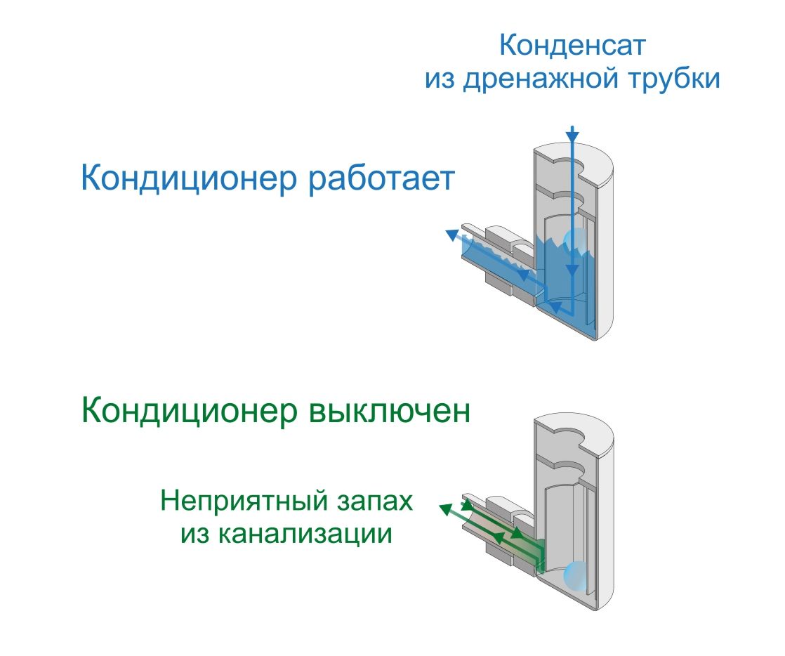 Сифон для кондиционера Vecam Mini - предназначен для отведения конденсата, образующегося в процессе работы сплит-системы в канализационный стояк. За счет сухой заслонки (шарика) неприятные запахи не поступают через дренажную трубку в помещение где расположен внутренний блок кондиционера, даже если в самом сифоне отсутствует вода, шарик опускается в специальную воронку и запирает сливное отверстие.